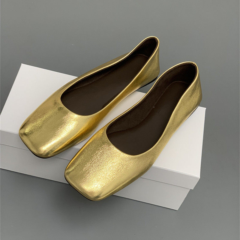 外贸原单芭蕾舞平底单鞋 子浅口方头软真皮舒适夏季 2025年新款 女鞋