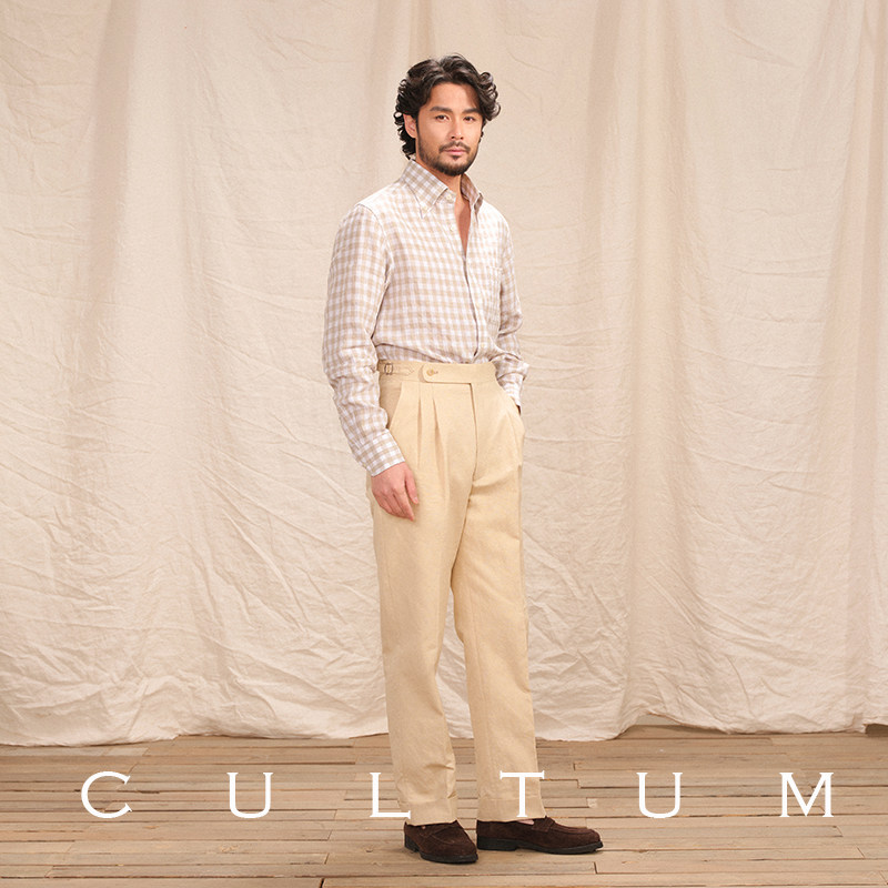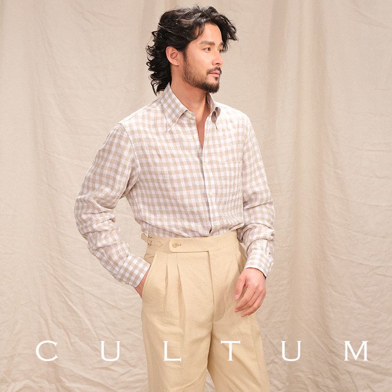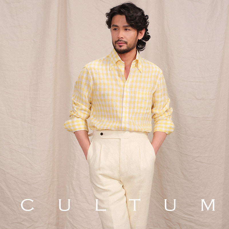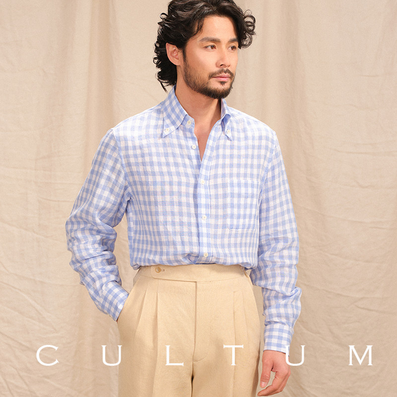 格子衬衫 男 纽扣领意式 CULTUM透气经典 可机洗 法国21支长亚麻由