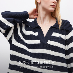 针织衫 女 饰边海军风大翻领条纹插肩袖 衣摆绳带装 ONLY奥莱 春季