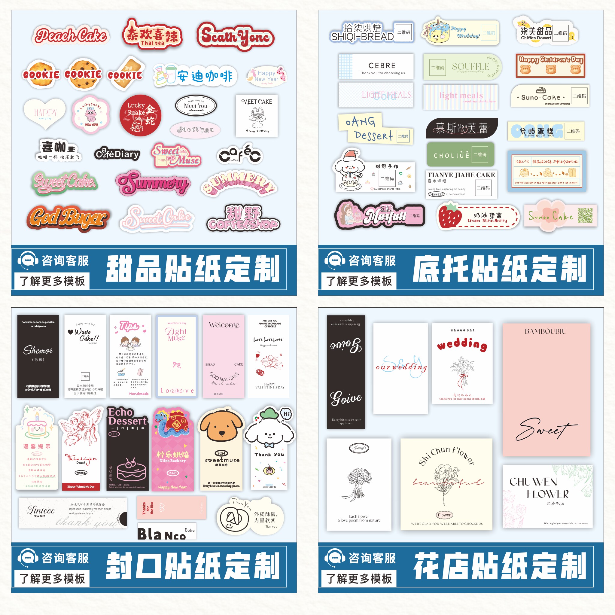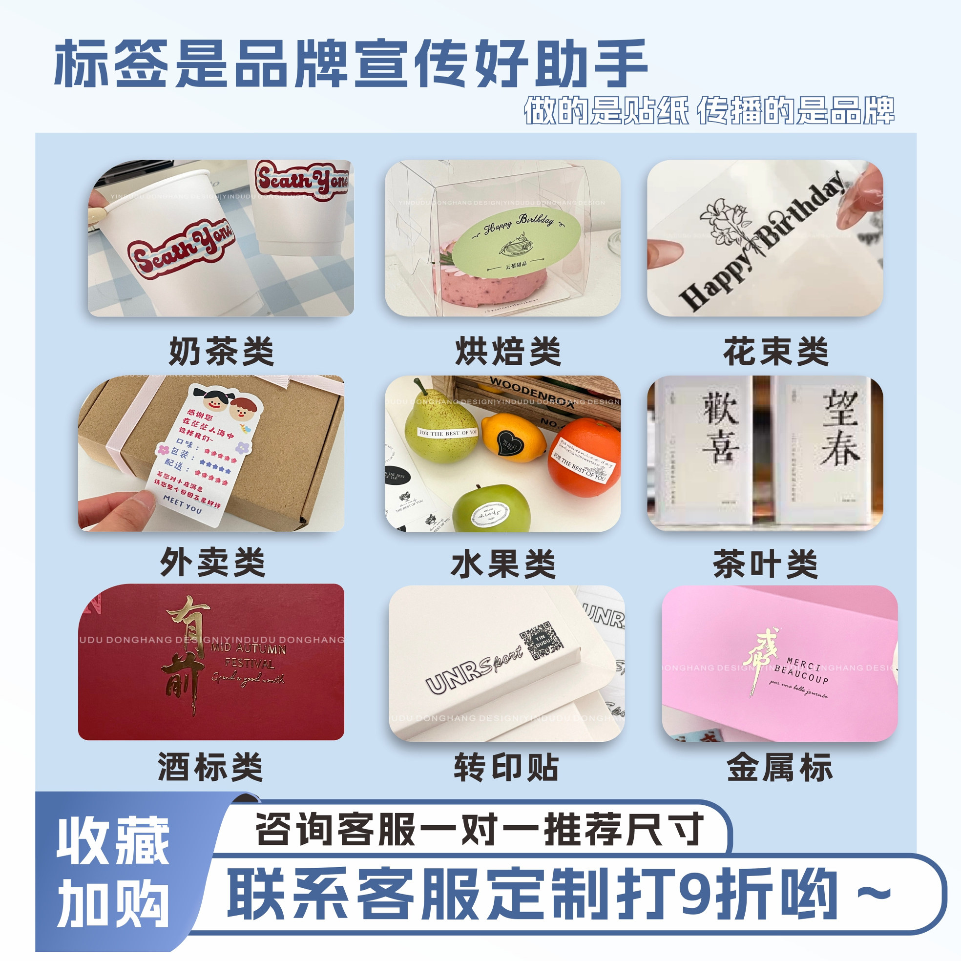 水果外卖花店 不干胶 烘焙蛋糕奶茶咖啡杯 贴纸定制标签logo二维码