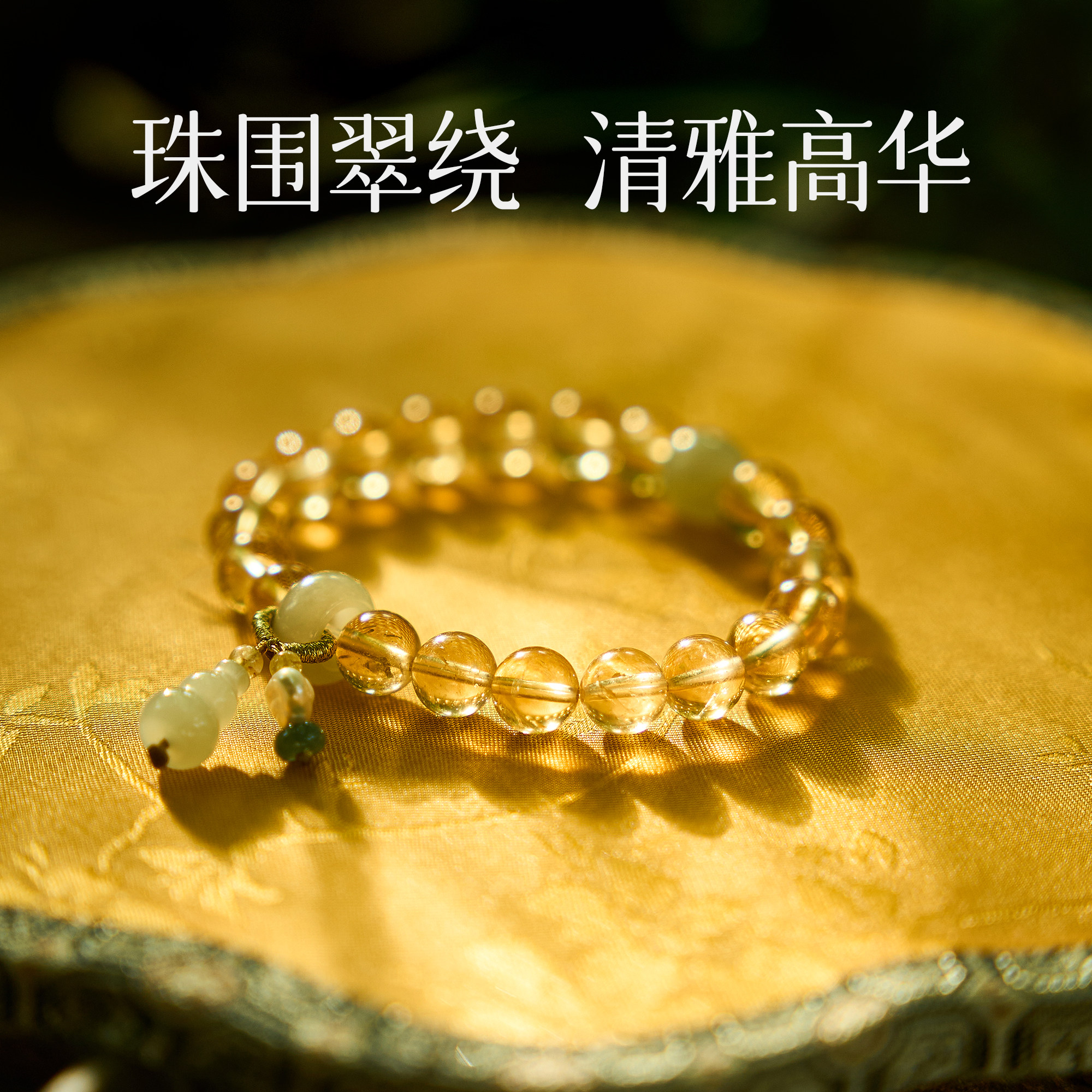 国风招财转运珠子饰品手饰礼物手串首饰 阿吉豆黄水晶手链女新中式