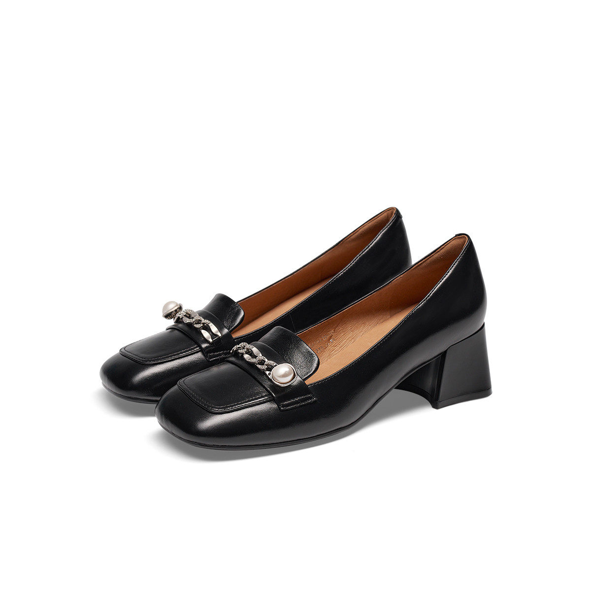 女KA54135 KISS 羊皮乐福鞋 方头高跟单鞋 CAT 接吻猫春秋小皮鞋由
