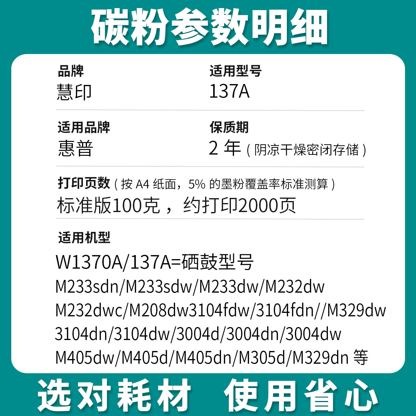 为您提供商品1520a打印机277a 4004dn 慧印适用惠普hp137a墨粉w1370a硒鼓粉m232dwc sdn fdn 4104dw 429dw m233sdw 329dw的详细介绍,