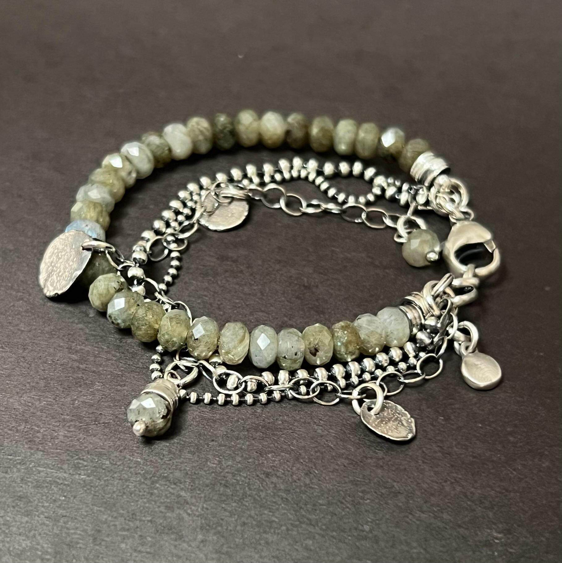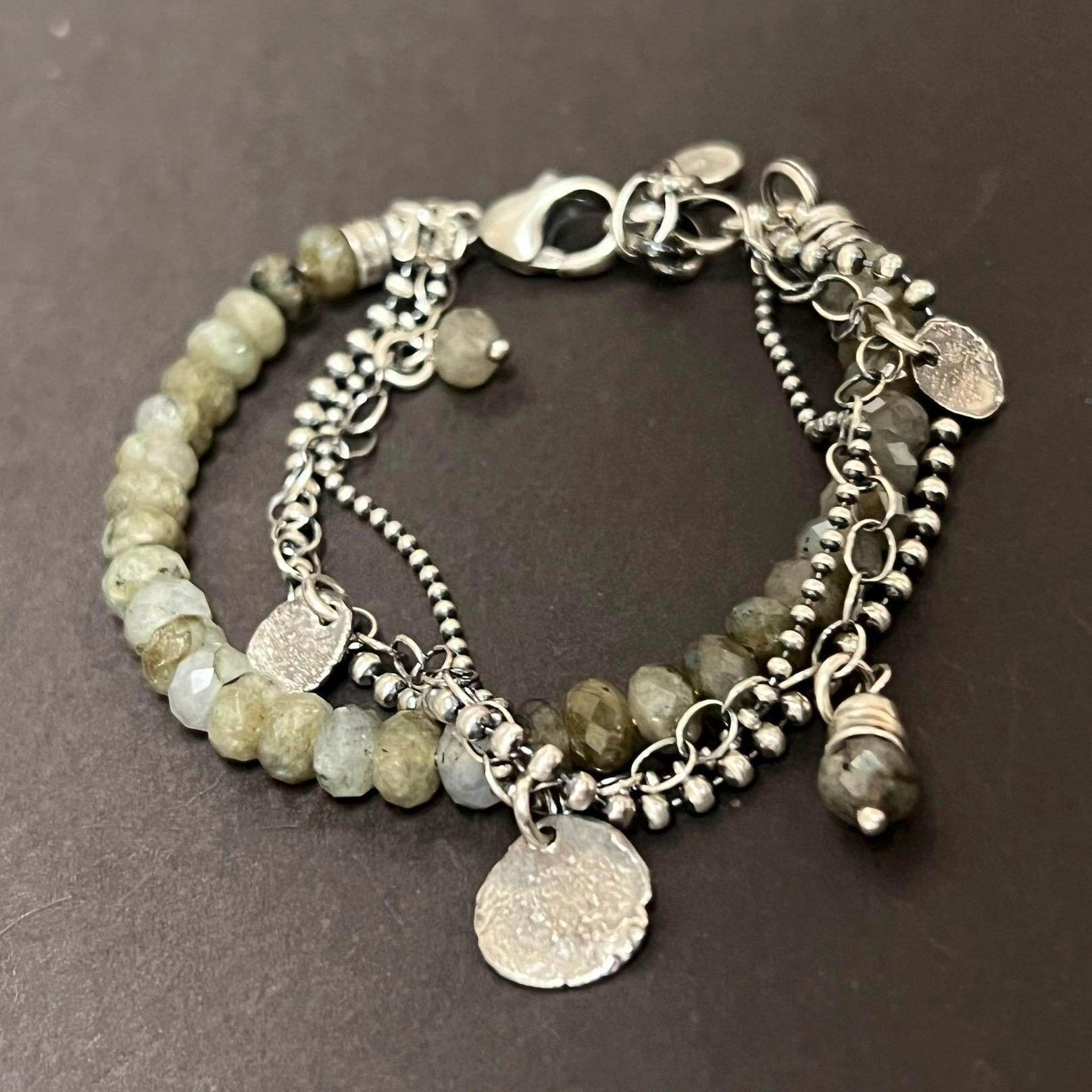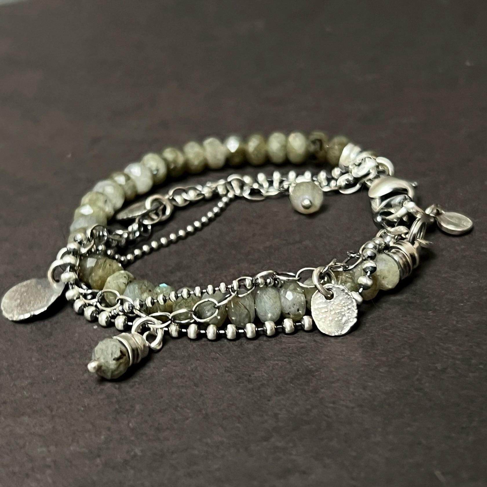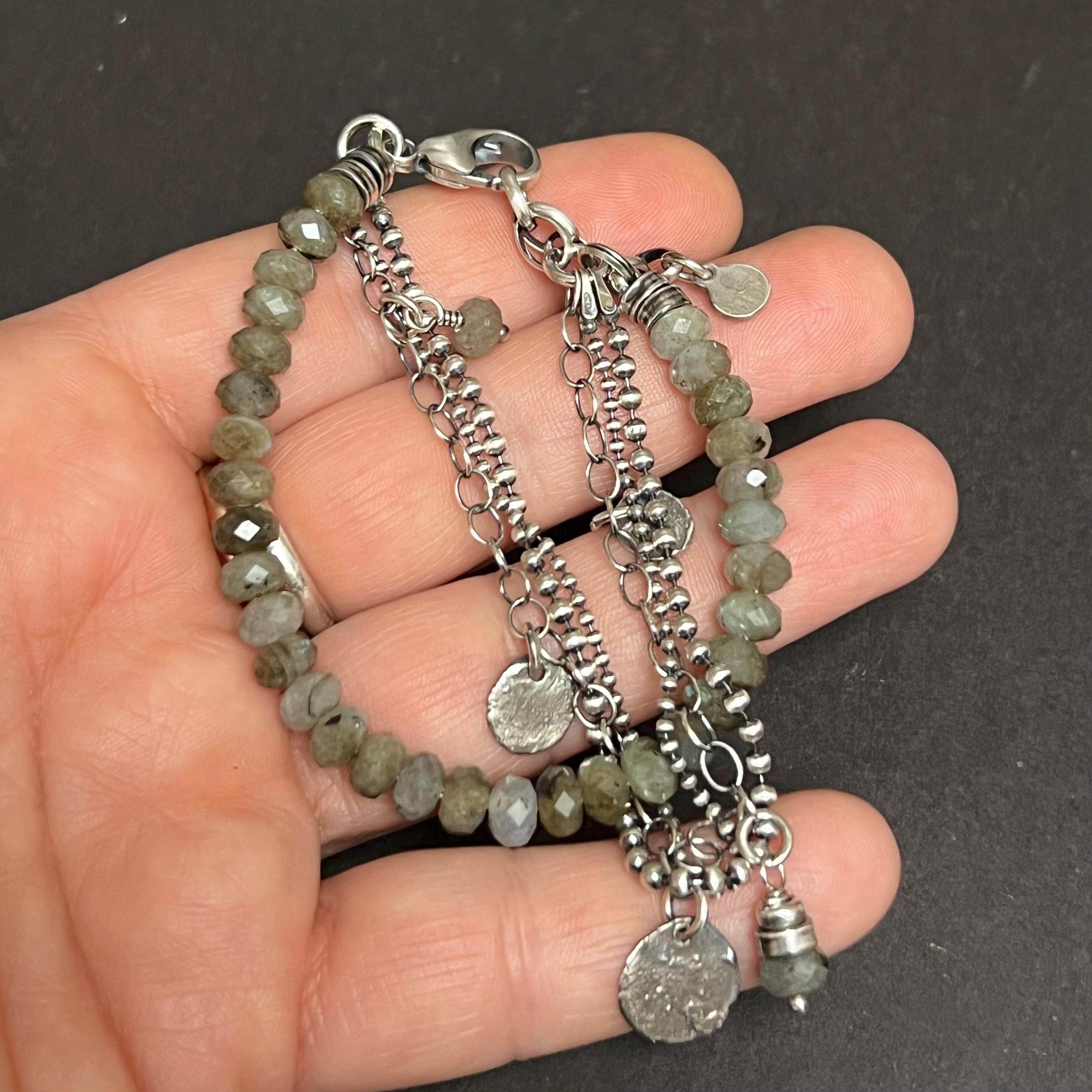 Rustic◇手作复古多面拉长石珠子宝石银链纯银叠戴手链 英国代购由