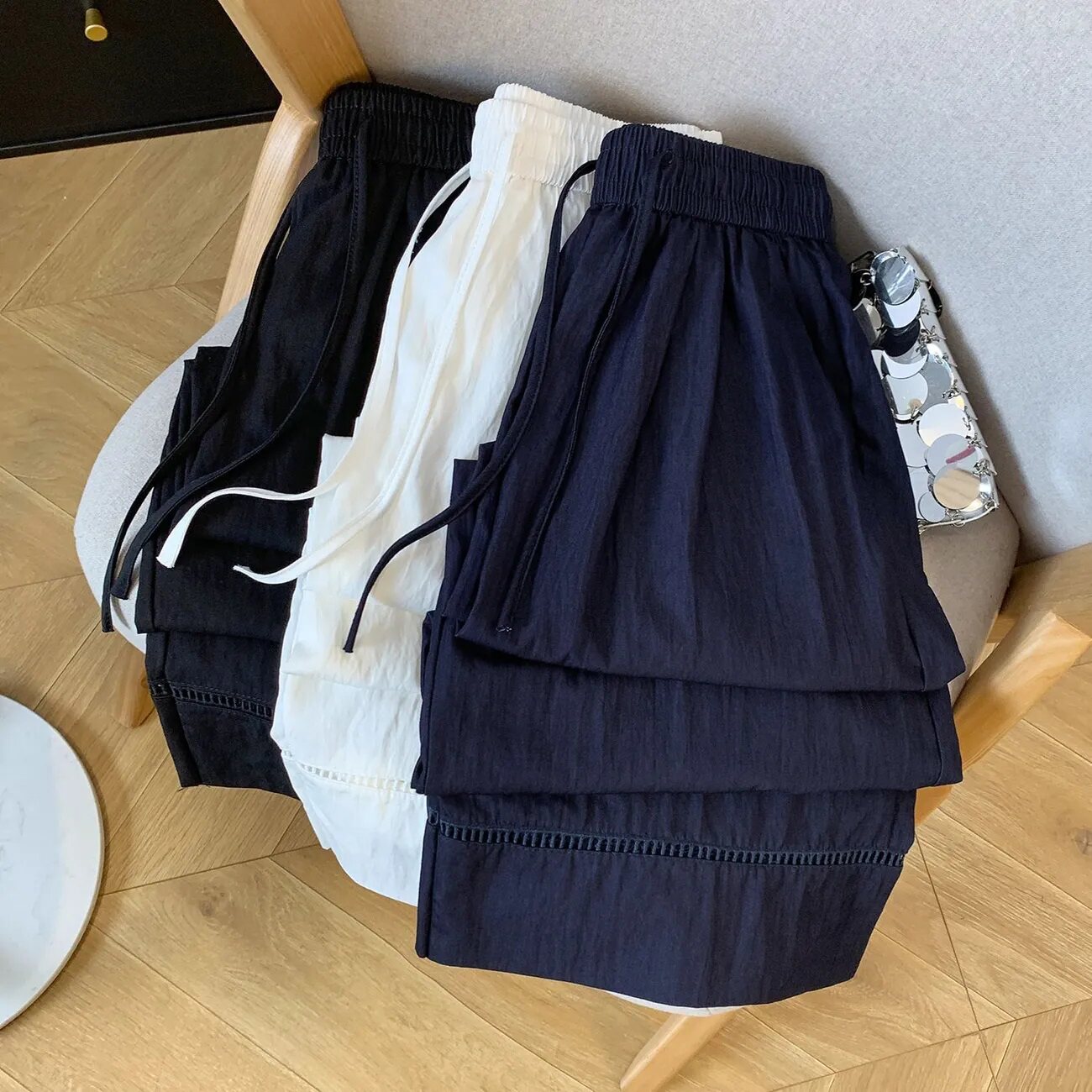 新款 杨幂同款 SIINSIIN休闲白色直筒裤 女春季 小个子2026黑色 运动裤