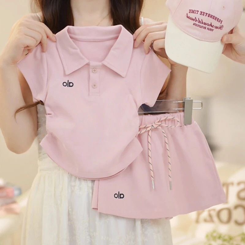 刺绣裙裤 女童夏季 两件套潮 POLO衫 儿童学院风女孩短袖 套装 2026新款