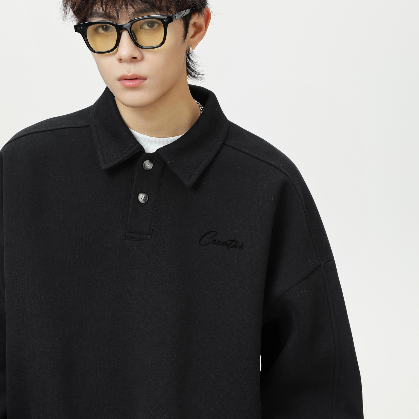 美式 春季 黑色翻领重磅卫衣男2026新款 上衣休闲polo衫 男装 长袖 男士