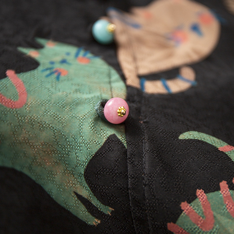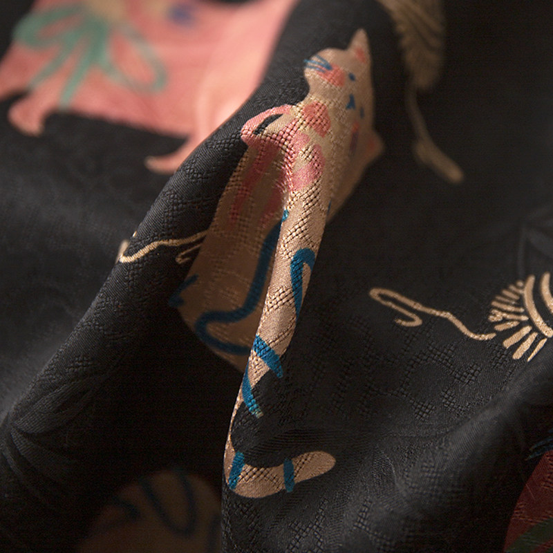 为您提供商品小衫 猫咪印花真丝香云纱花萝斜襟上衣女100%桑蚕丝提花短袖 丝艺的详细介绍,