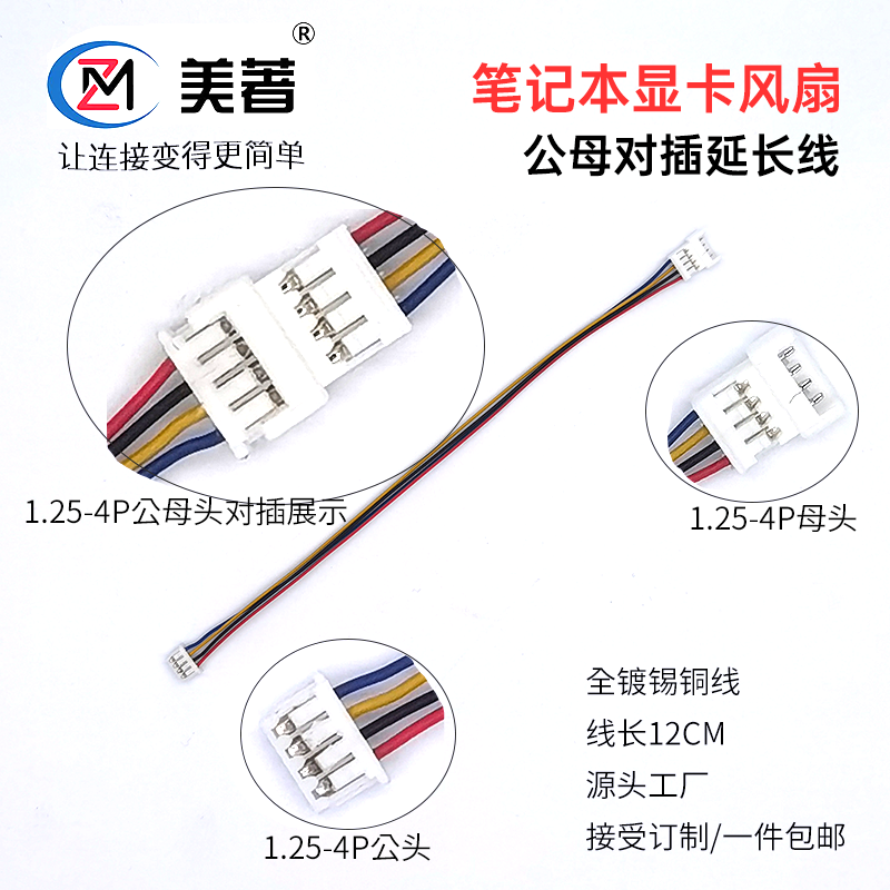 2P3P4P公母对插延长线笔记本显卡风扇4PIN温控PWM扩展线 MX1.25由