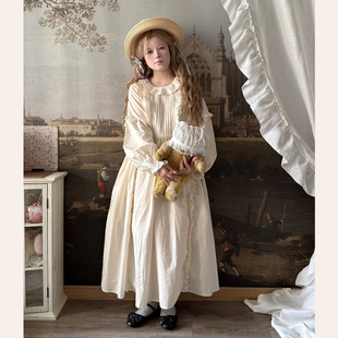 复古甜美镂空刺绣风琴褶泡泡袖 连衣裙早春宽松高腰裙子 岛 Labeau
