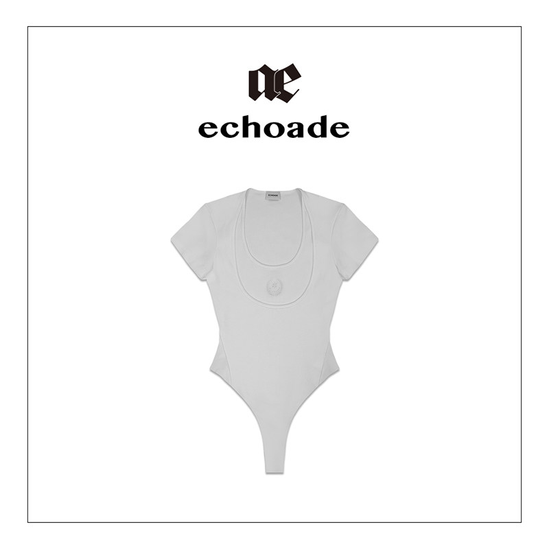 连体T恤 ECHOADE时髦精B入甄选柔软舒适螺纹双领口水滴U领设计修身