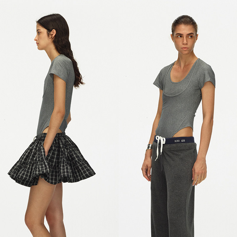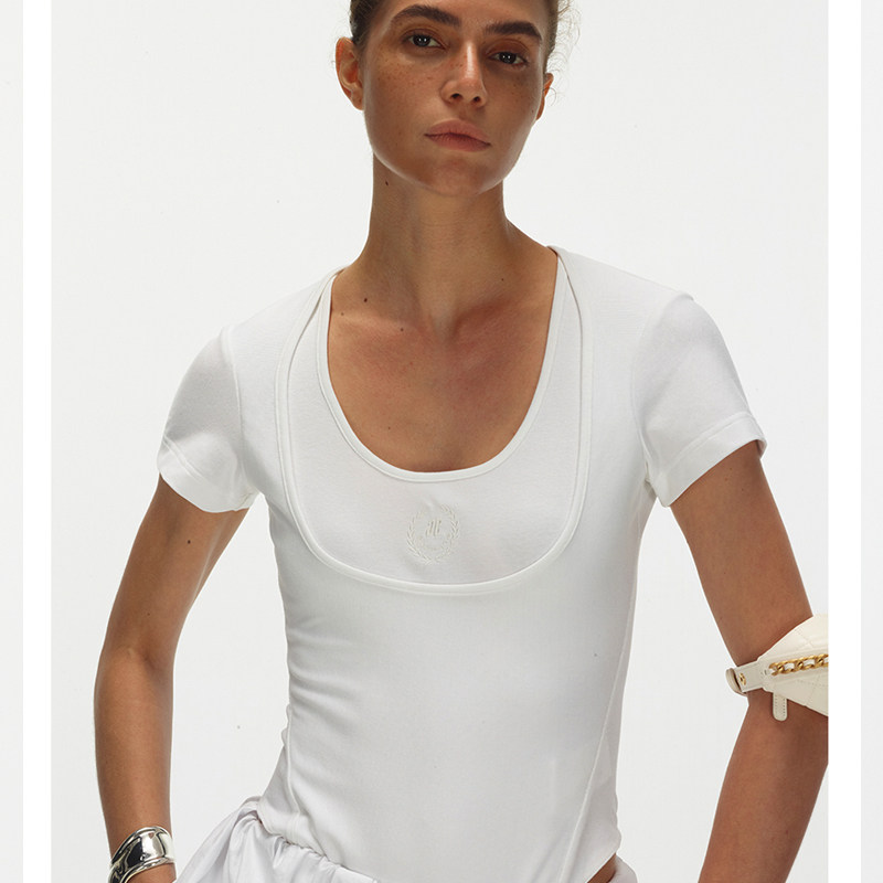 连体T恤 ECHOADE时髦精B入甄选柔软舒适螺纹双领口水滴U领设计修身由