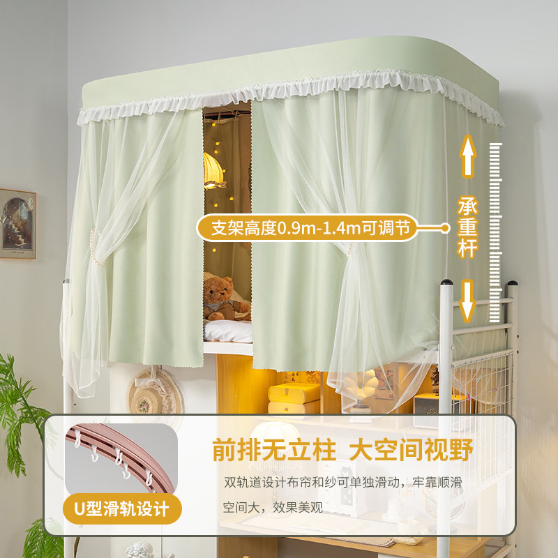 上下铺加厚帘子寝室床幔 学生宿舍u型双轨道床帘强遮光蚊帐一体式由