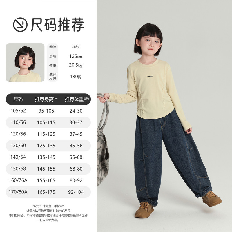 布丁哈鲁童装 2026春秋新款 儿童休闲宽松牛仔裤 大童 女童水洗牛仔裤由