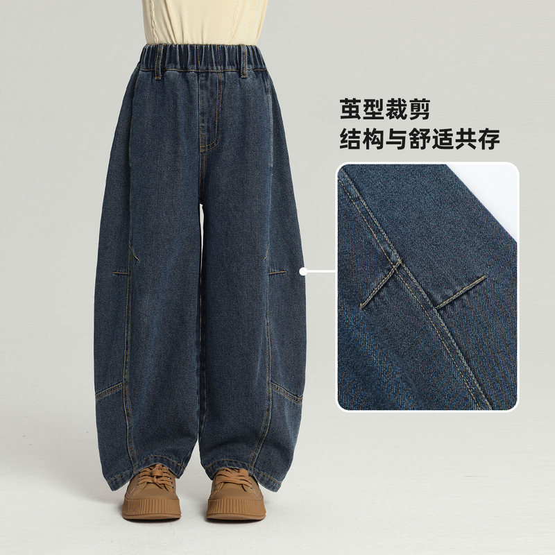 布丁哈鲁童装 2026春秋新款 儿童休闲宽松牛仔裤 大童 女童水洗牛仔裤