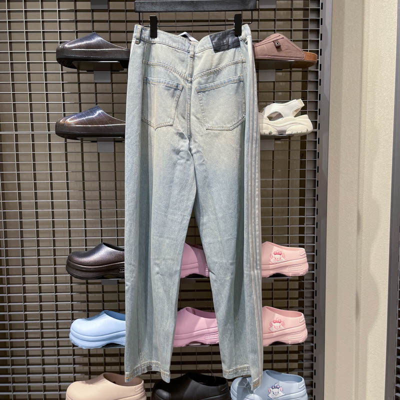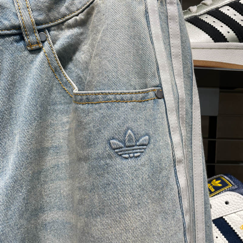 Adidas三叶草宋雨琦同款 运动牛仔裤 JN0726 JX6865 复古阔腿弯刀裤