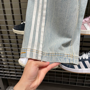 宋雨琦同款 女装 春季 adidas阿迪达斯三叶草 休闲阔腿直筒牛仔运动裤