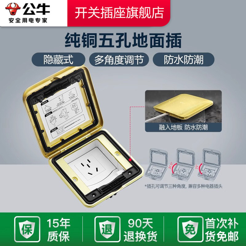 全铜地板地脚插座 公牛开关插座公牛地插座官方旗舰店地脚插翻盖式由