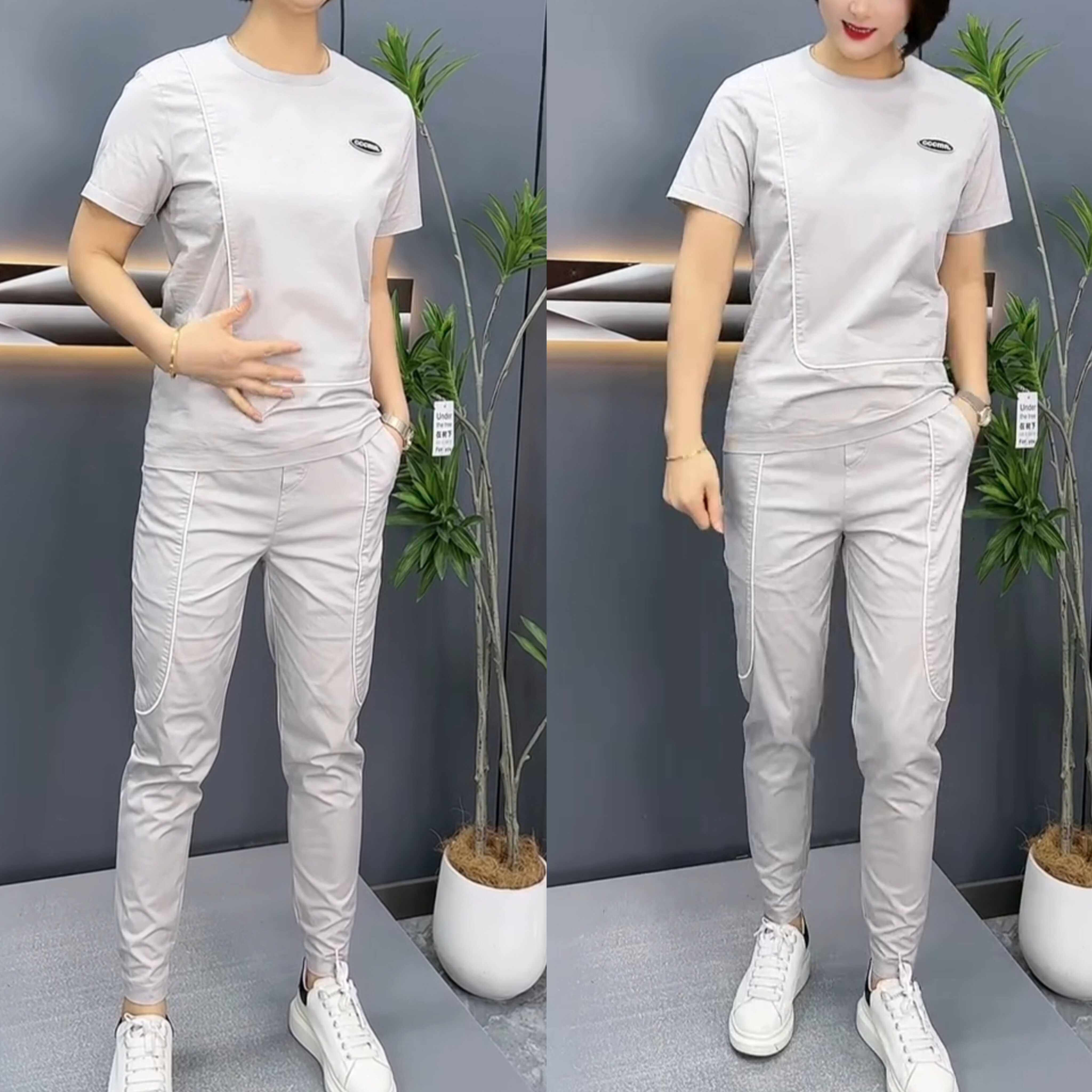 女运动休闲通勤慵懒时尚 2026春款 套装 两件套长袖 百搭短袖