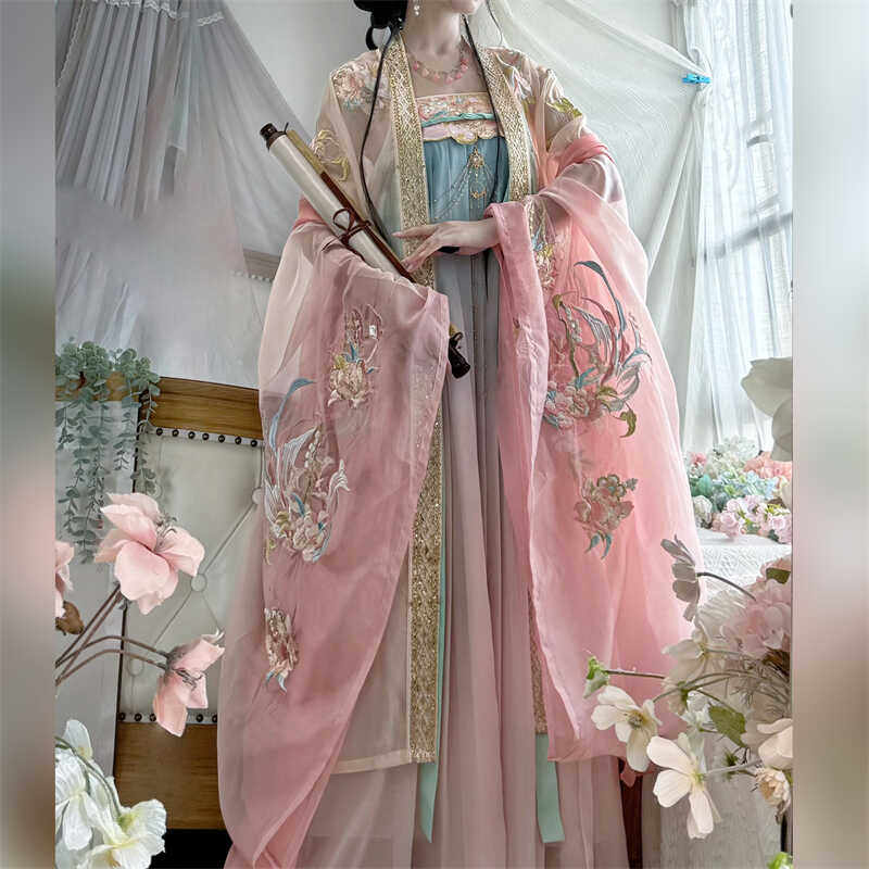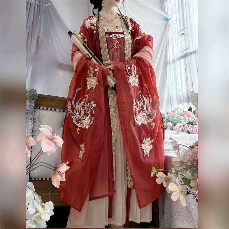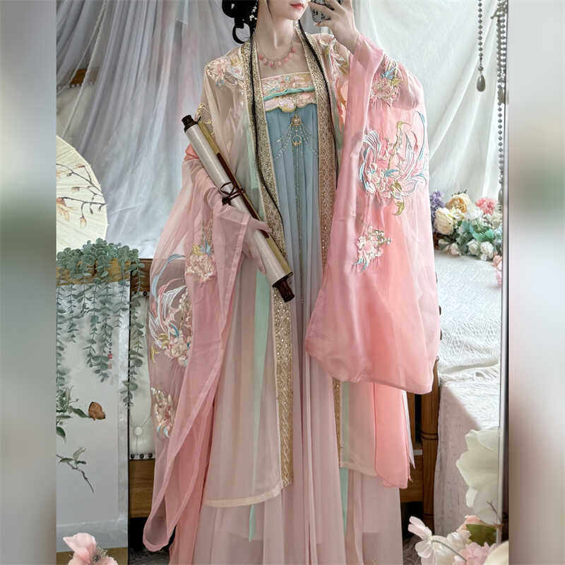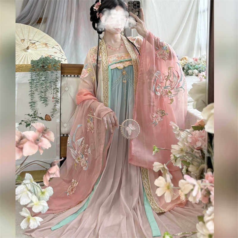 墨晨烟雨 原创汉服唐制齐胸裙重工刺绣大袖 衫 超仙古风 桃子夭夭
