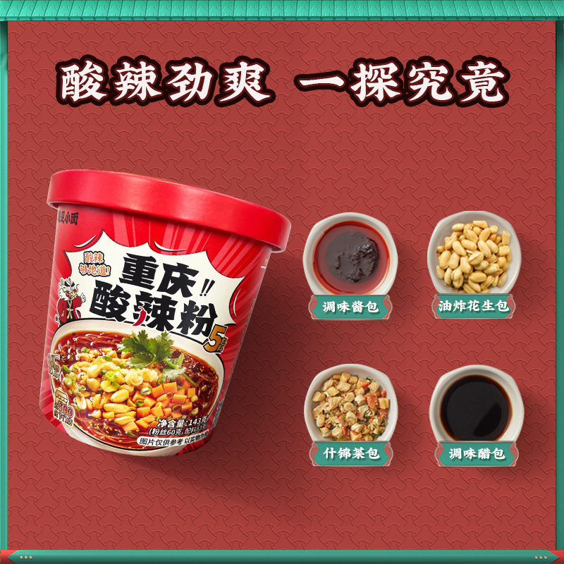 遇见小面重庆酸辣方便冲泡速食免煮粉丝尝鲜装 1桶 143g由