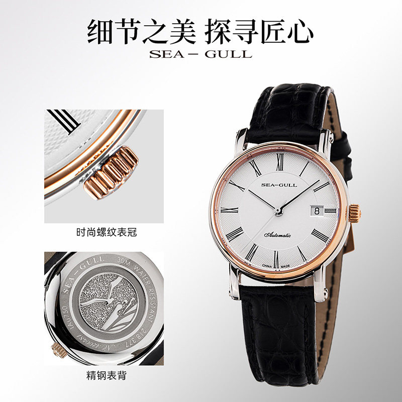 为您提供商品海鸥手表男女士情侣对表18K金简约休闲全自动机械表218.377L 正品的详细介绍,