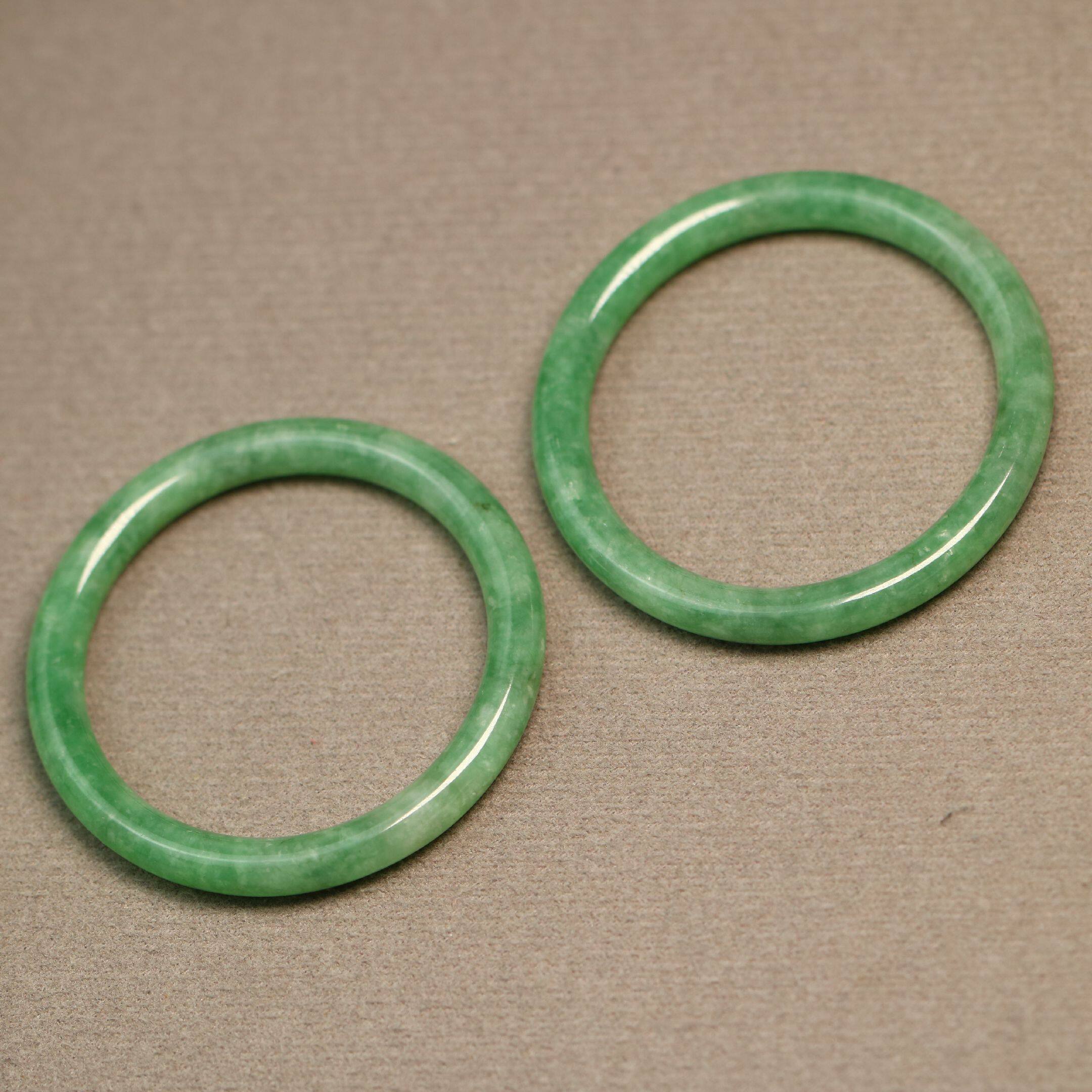 E377一对冰糯底满绿天然A货翡翠袈裟环圆环由