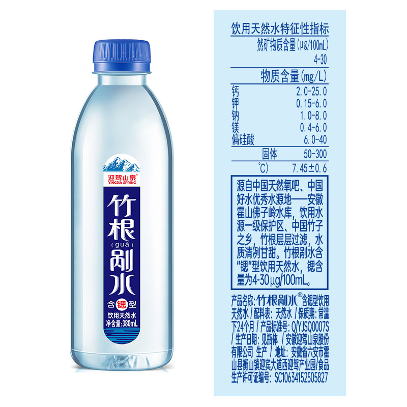 为您提供商品迎驾山泉含锶竹根剐水380m&500ml 弱碱性天然饮用水 24瓶小瓶装的详细介绍,