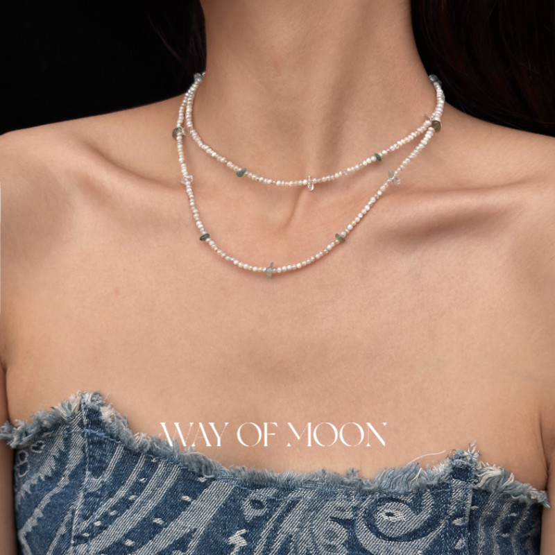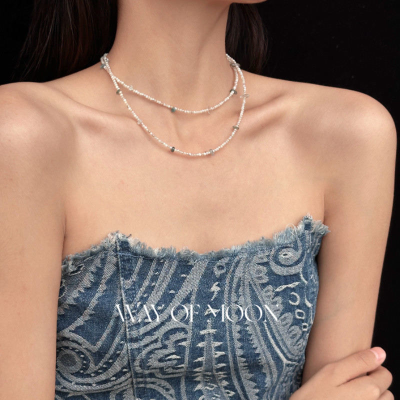 WAY MOON原创设计双层极光贝母天然碎石项链锁骨链叠戴颈链女