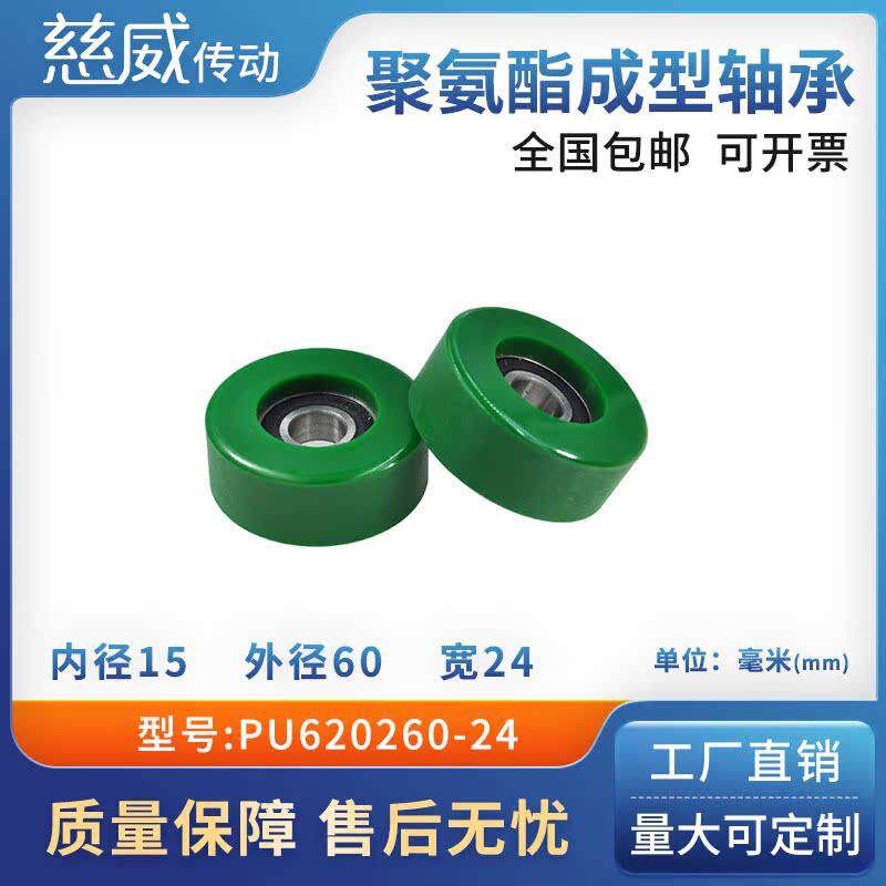 厂家直销超静音聚氨酯包胶轴承耐磨轨道轮滚轮滑轮PU620260由