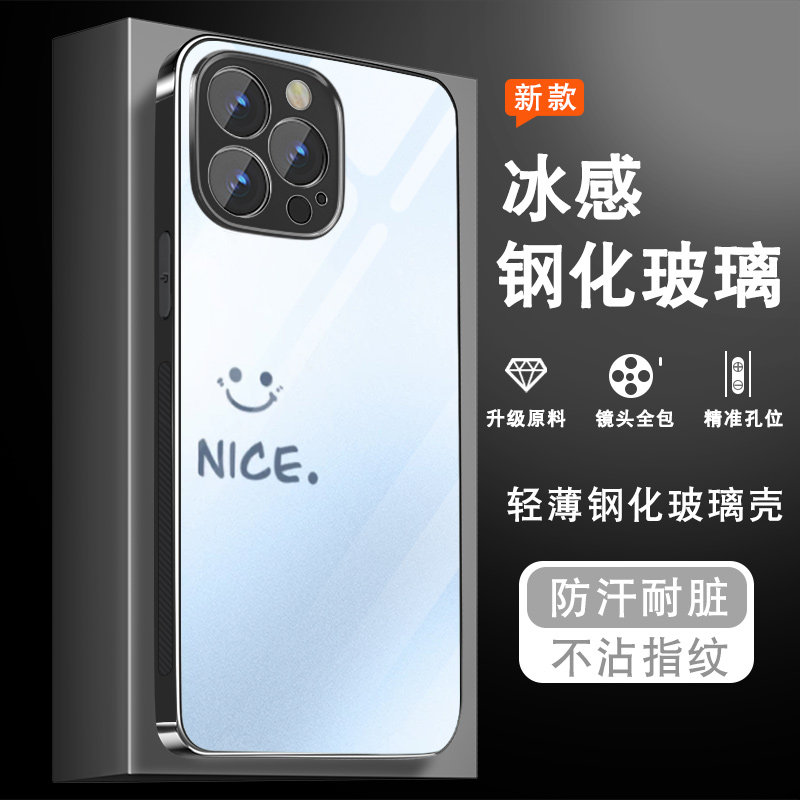 为您提供商品13钢化玻璃12promax男女11高级XR全包xsmax简约678plus硬mini壳se2 NICE笑脸适用苹果15pro手机壳iPhone14新款的详细介绍,