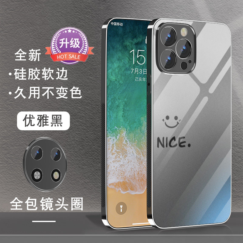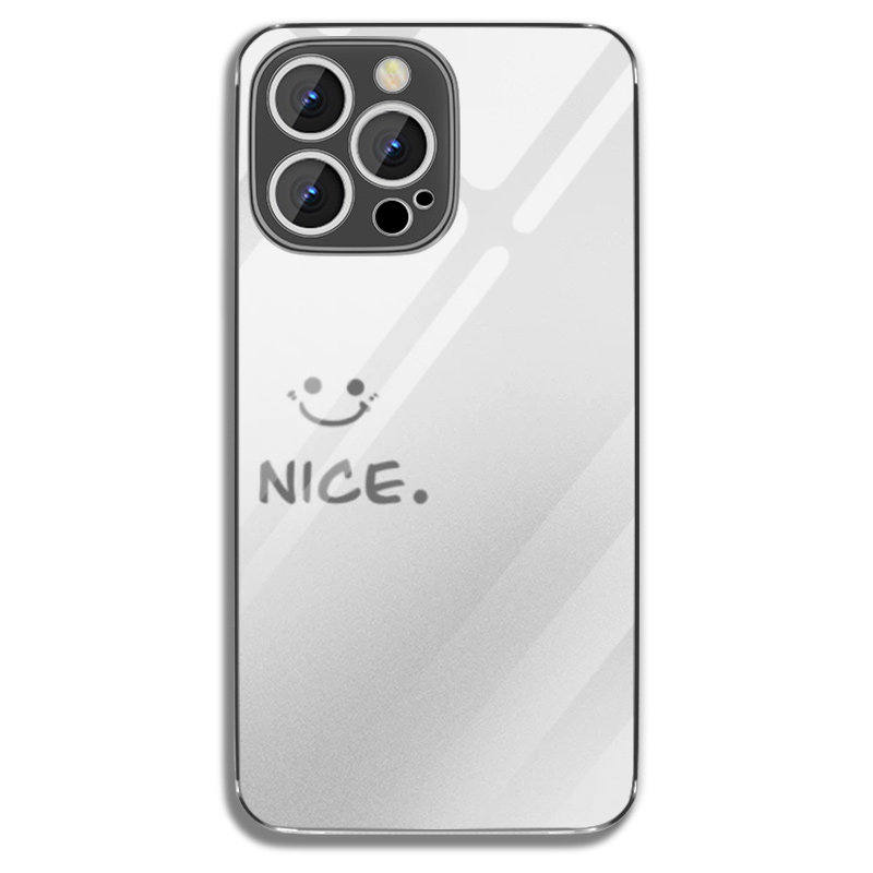 13钢化玻璃12promax男女11高级XR全包xsmax简约678plus硬mini壳se2 NICE笑脸适用苹果15pro手机壳iPhone14新款