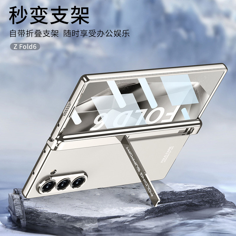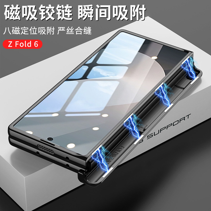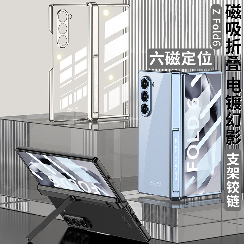壳膜一体Fold6超薄保护套中轴磁吸铰链全包防摔Galax5自带支架Z电镀透明折叠屏高档 适用三星ZFold6手机壳新款