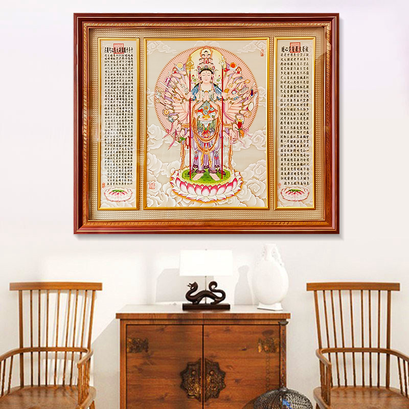 为您提供商品饰画 极速千手观音佛像挂画手工定制玄关茶室禅意心经字画客厅装的详细介绍,
