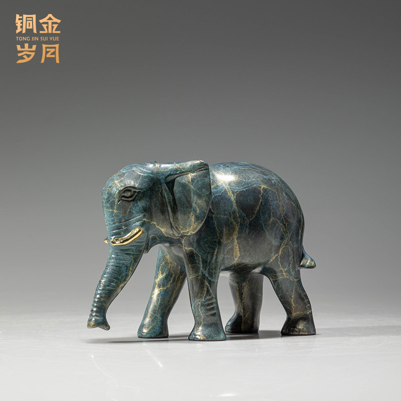 铜金岁月黄铜大象摆件新中式 工艺品铜器玄关客厅装 饰 富贵吉祥由
