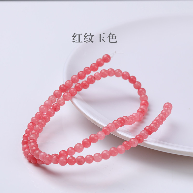 4mm7A海蓝宝红纹玉薰衣草紫黄粉色玉髓散珠男女士手串手链项链由