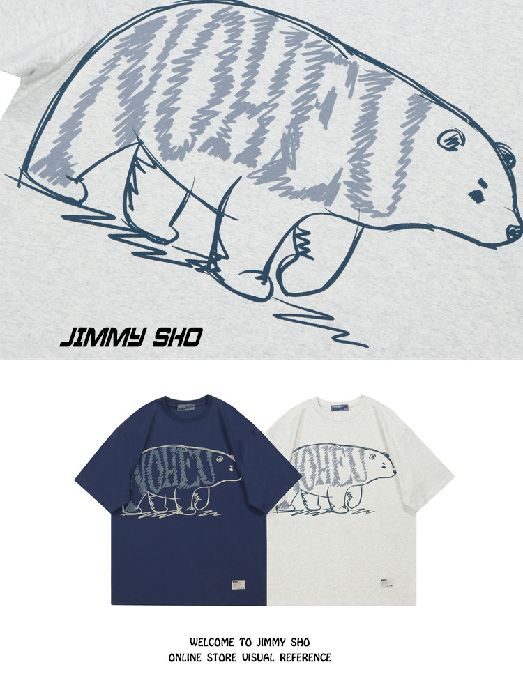 为您提供商品复古男女情侣装 jimmy sho北极熊简约印花夏季 oversize美式 T恤 短袖的详细介绍,