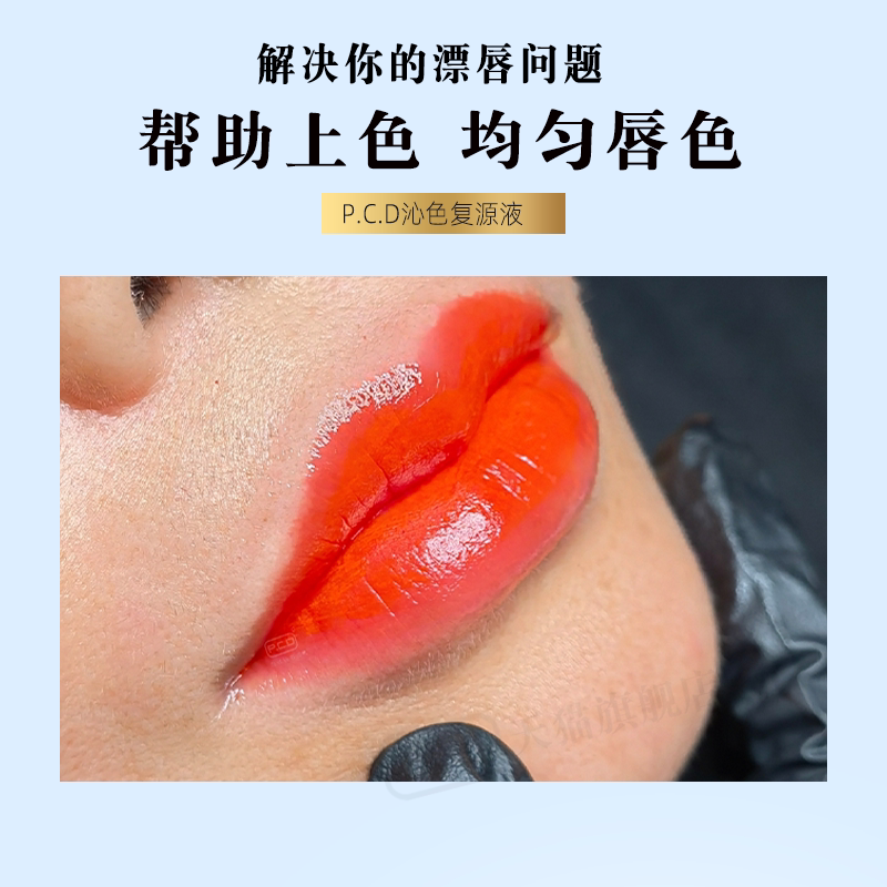 PCD沁色复源液漂唇中后使用固色护色减少掉色让唇部上色更均匀由