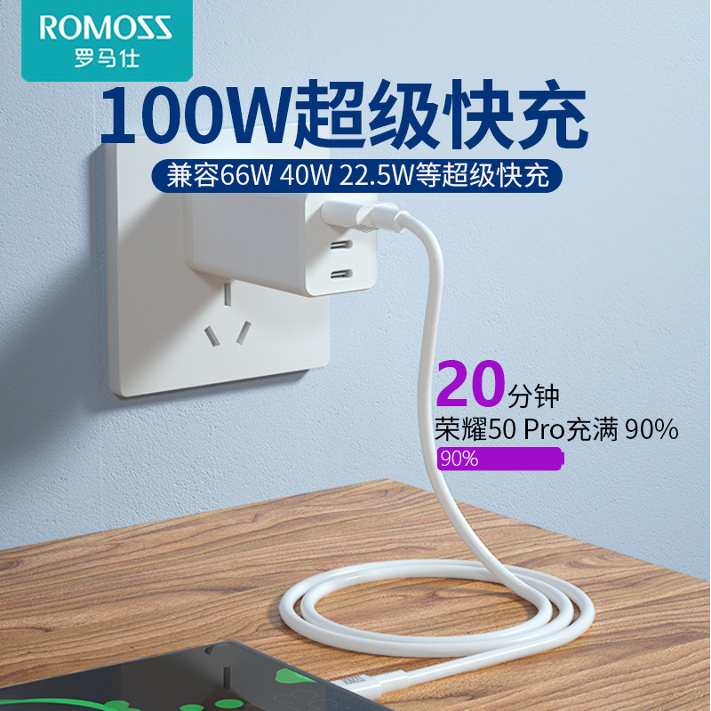 66W超级快充适用于iPhone15 罗马仕type c快充线适用于华为荣耀闪充数据线100W 88W 17车载充电由