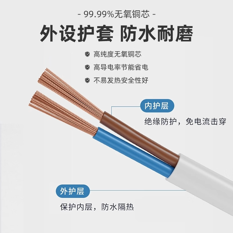 家用电线平行线二芯0.75 1.5 2.5 4平方软护套线防晒防冻电源线