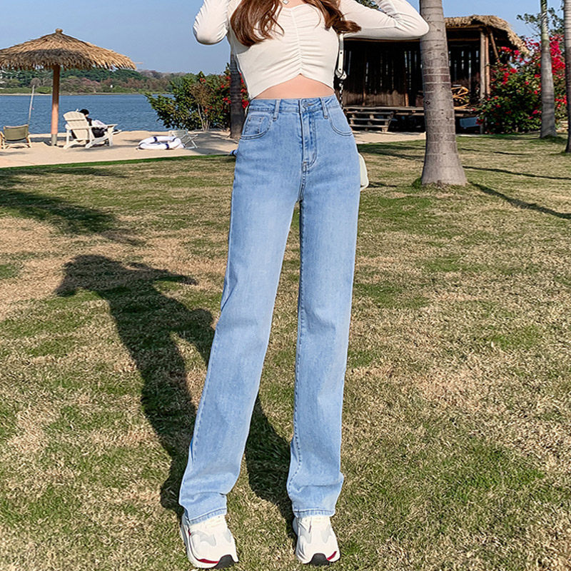 大码 浅色直筒牛仔裤 女高腰春季 新款 子 胖mm宽松显瘦梨形身材阔腿裤