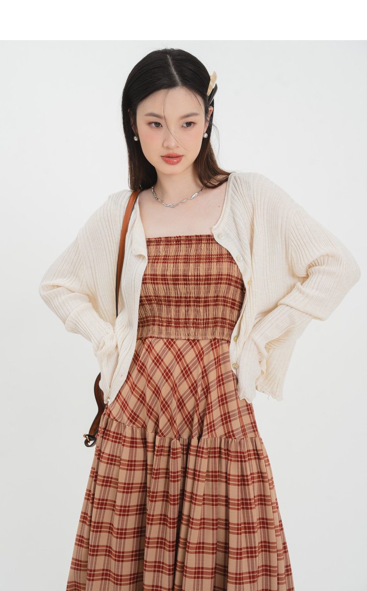 为您提供商品法式 2023新款 小众修身 打揽裙子 绑带格子长裙连衣裙女春季的详细介绍,