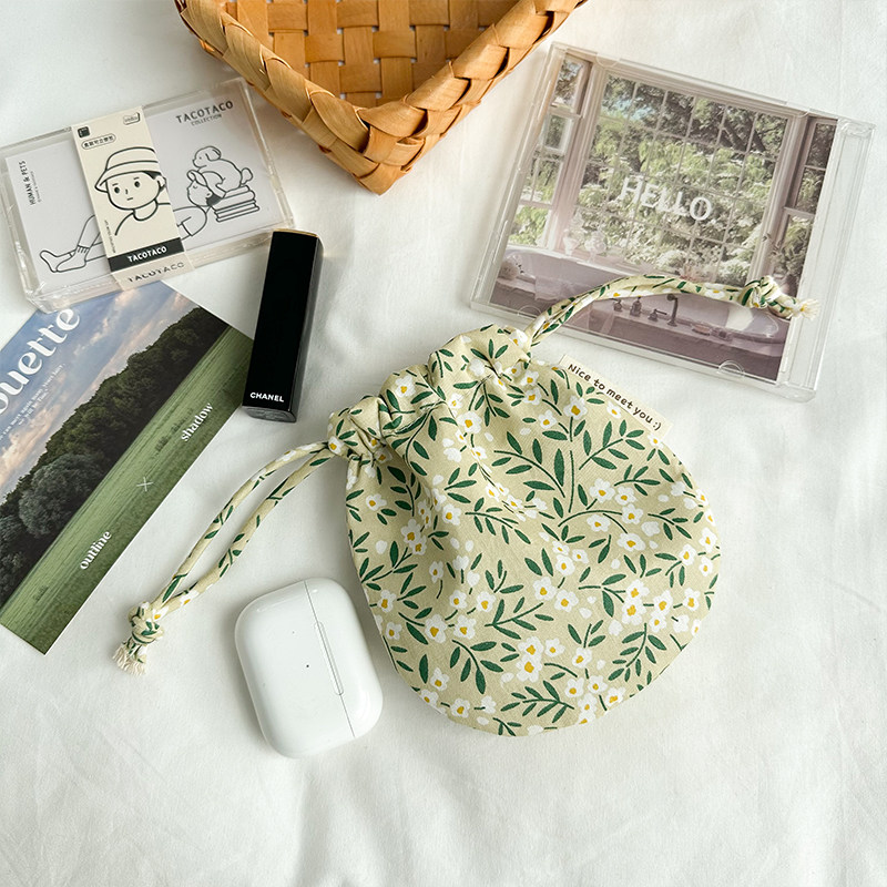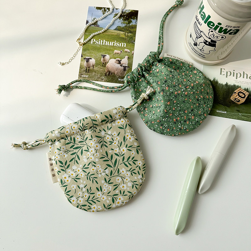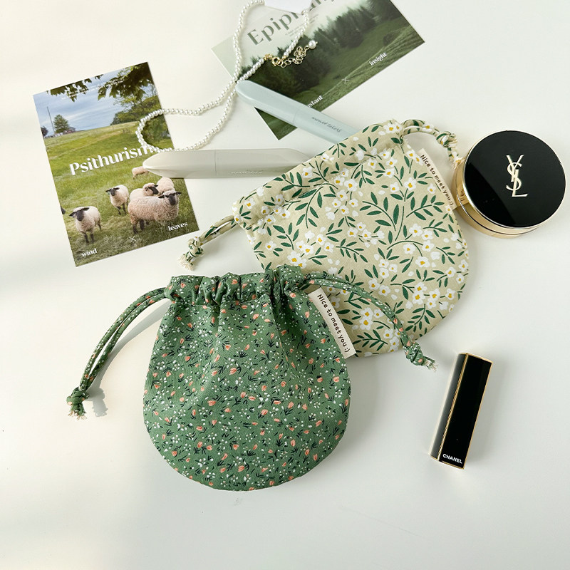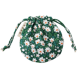 便携随身碎花小化妆包包口红耳机钥匙抽绳布袋 棉布束口收纳包女