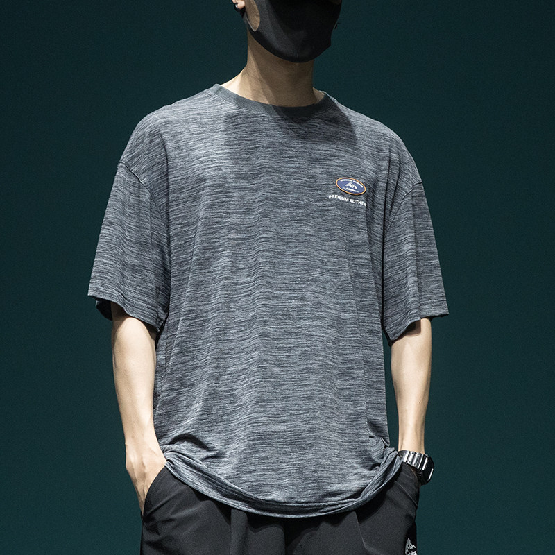 体恤男士 夏季 冰丝短袖 T恤男宽松胖子加肥加大码 运动上衣 速干半袖