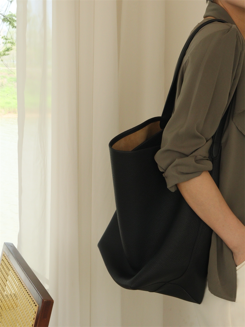 蜡线通勤高级感极简韩版 头层牛皮水桶包托特休闲 高定版