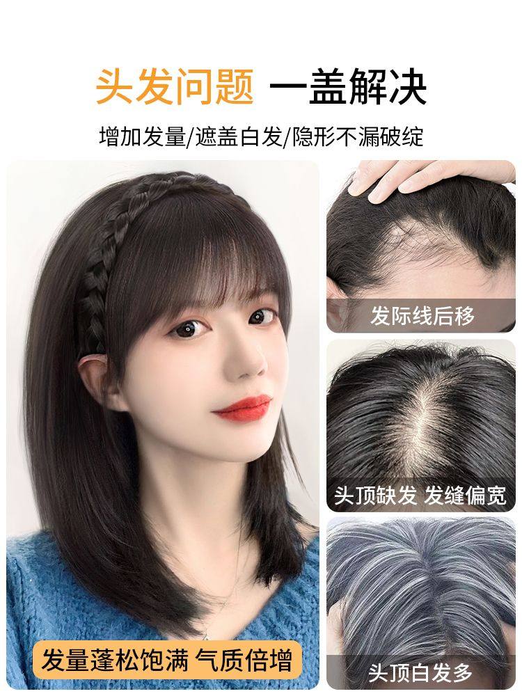 为您提供商品新款 自然隐形补前额遮白发仿真发头顶假发女片 发箍空气刘海一体式的详细介绍,