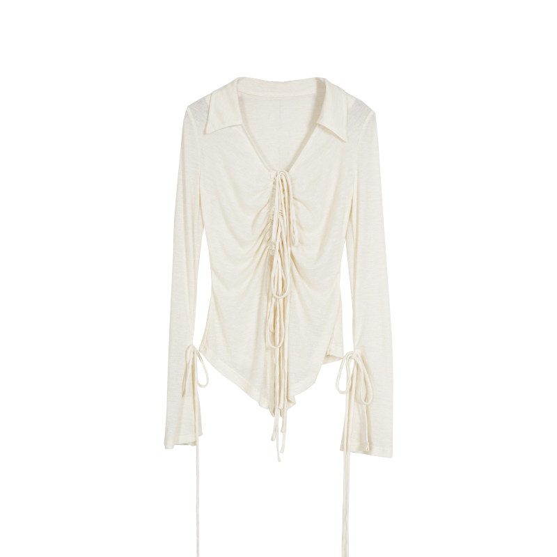米白系带针织开衫 法式 秋季 外套 小众浪漫修身 长袖 2023新款 ONMOON