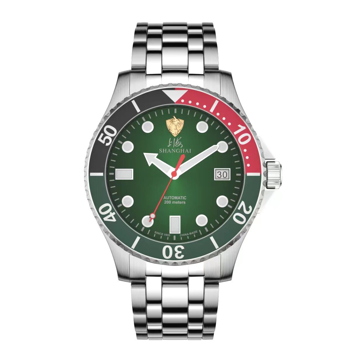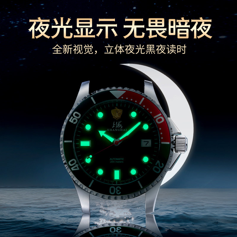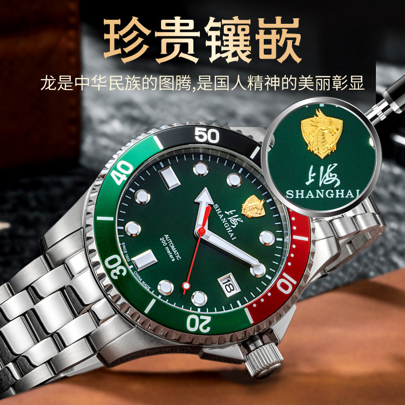 官方正品 腕表 上海牌手表男机械表潜水表夜光防水绿水鬼中国龙男士