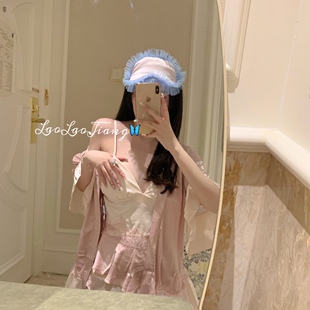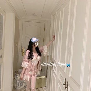 LaoLao酱 pink 吊带睡衣睡袍套装 仙女私房性感蕾丝 可口甜心由