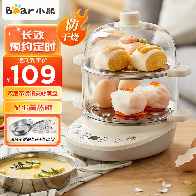小熊煮蛋器自动断电家用小型蒸蛋器双层早餐机预约定时蒸蛋羹神器由